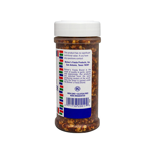 You’ll be hard pressed finding a Mexican, Cajun, Creole, Thai, Szechuan, or Indian recipe that couldn’t benefit from a sprinkle of crushed red pepper. At Bolner’s Fiesta Brand, we use the finest quality of Chili Peppers when making our savory Crushed Red Pepper. If your recipes need a dash of heat and an exciting boost of flavor,look no further. This is a “must have” addition to every pantry.