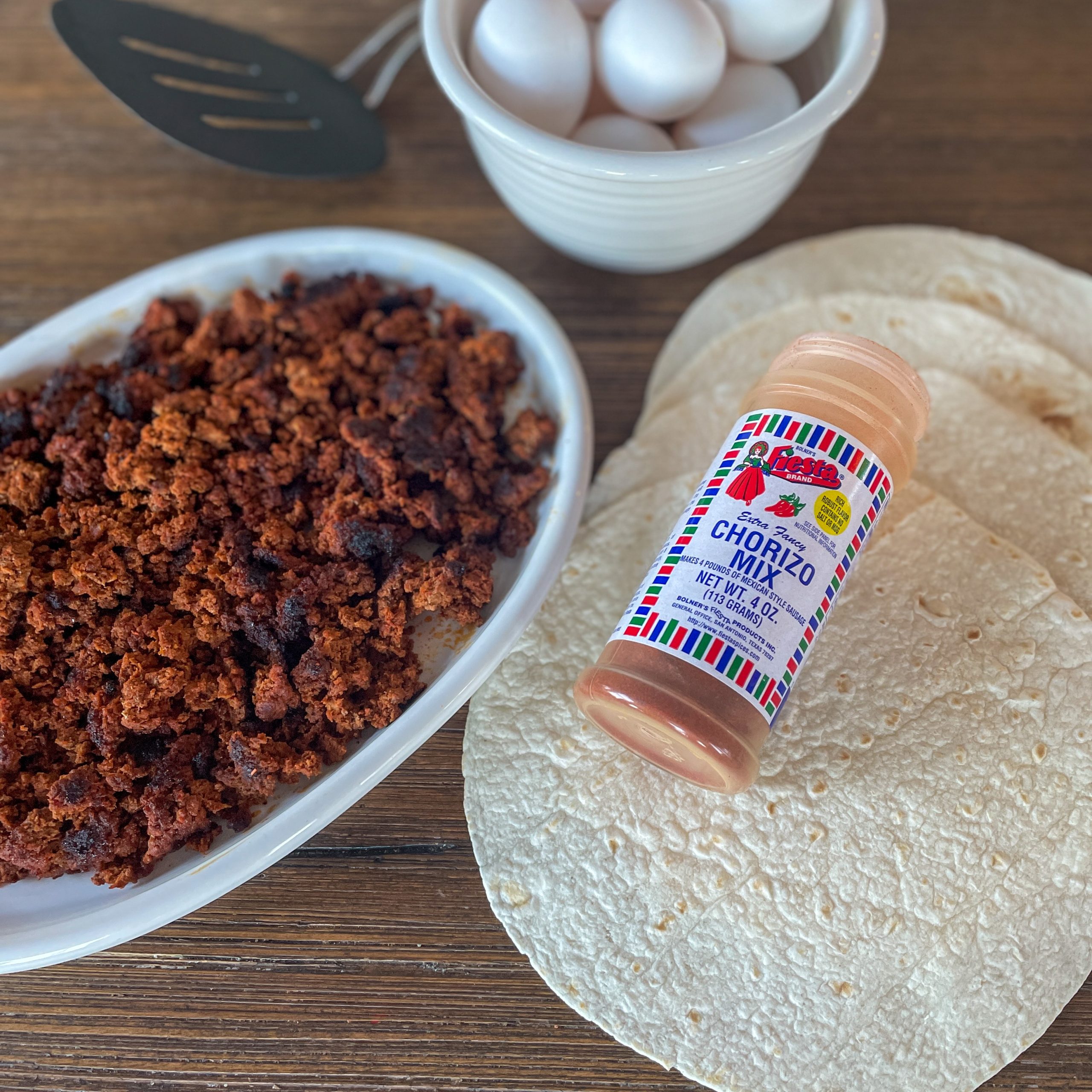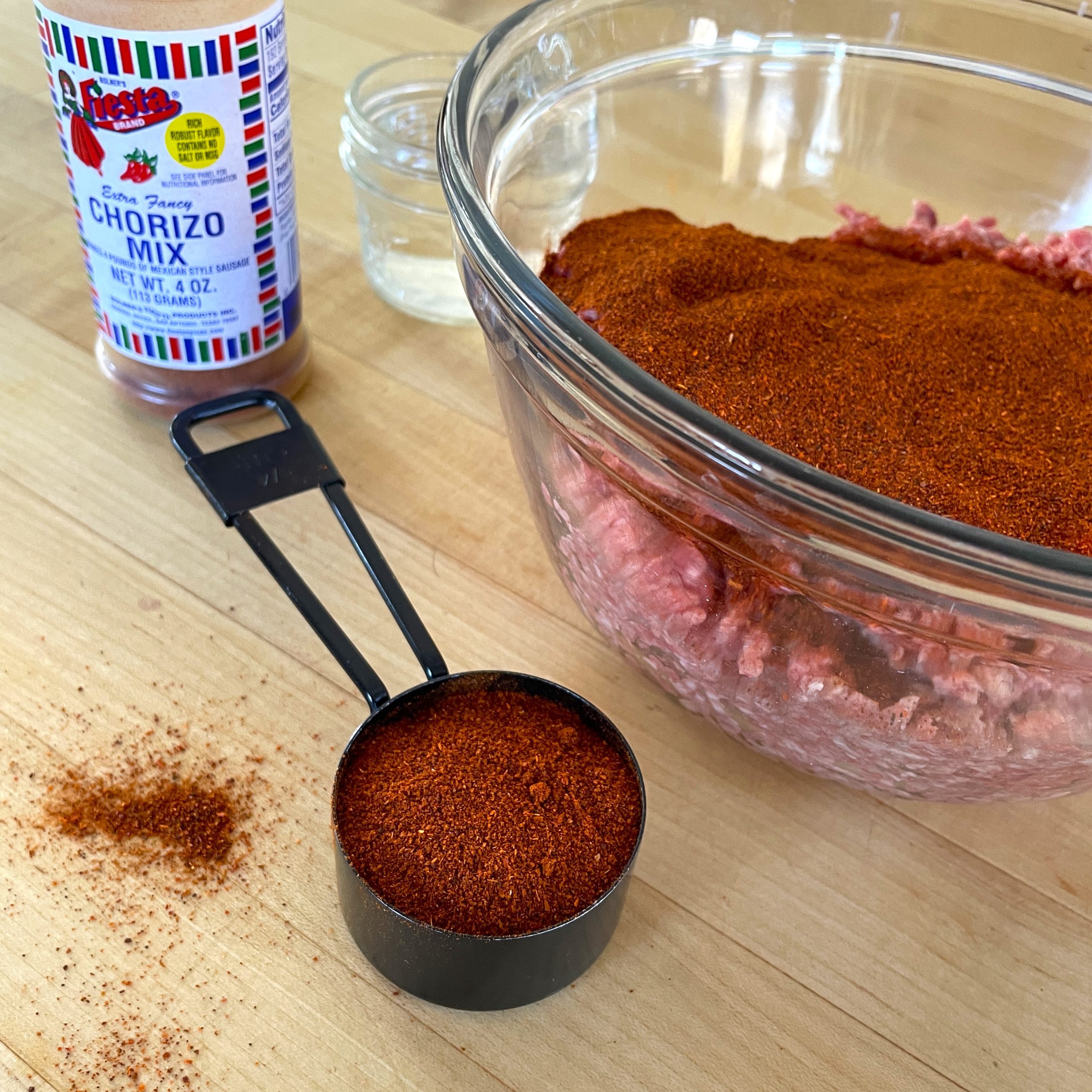 • 10 tablespoons Bolner’s Fiesta Brand Chorizo Mix