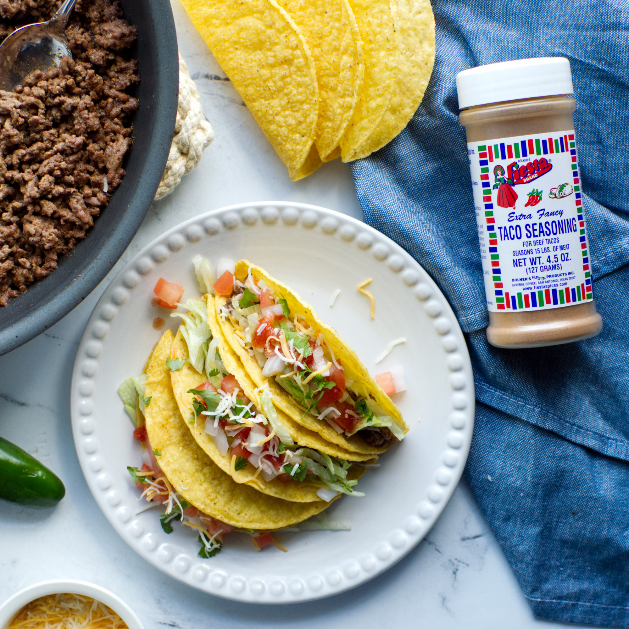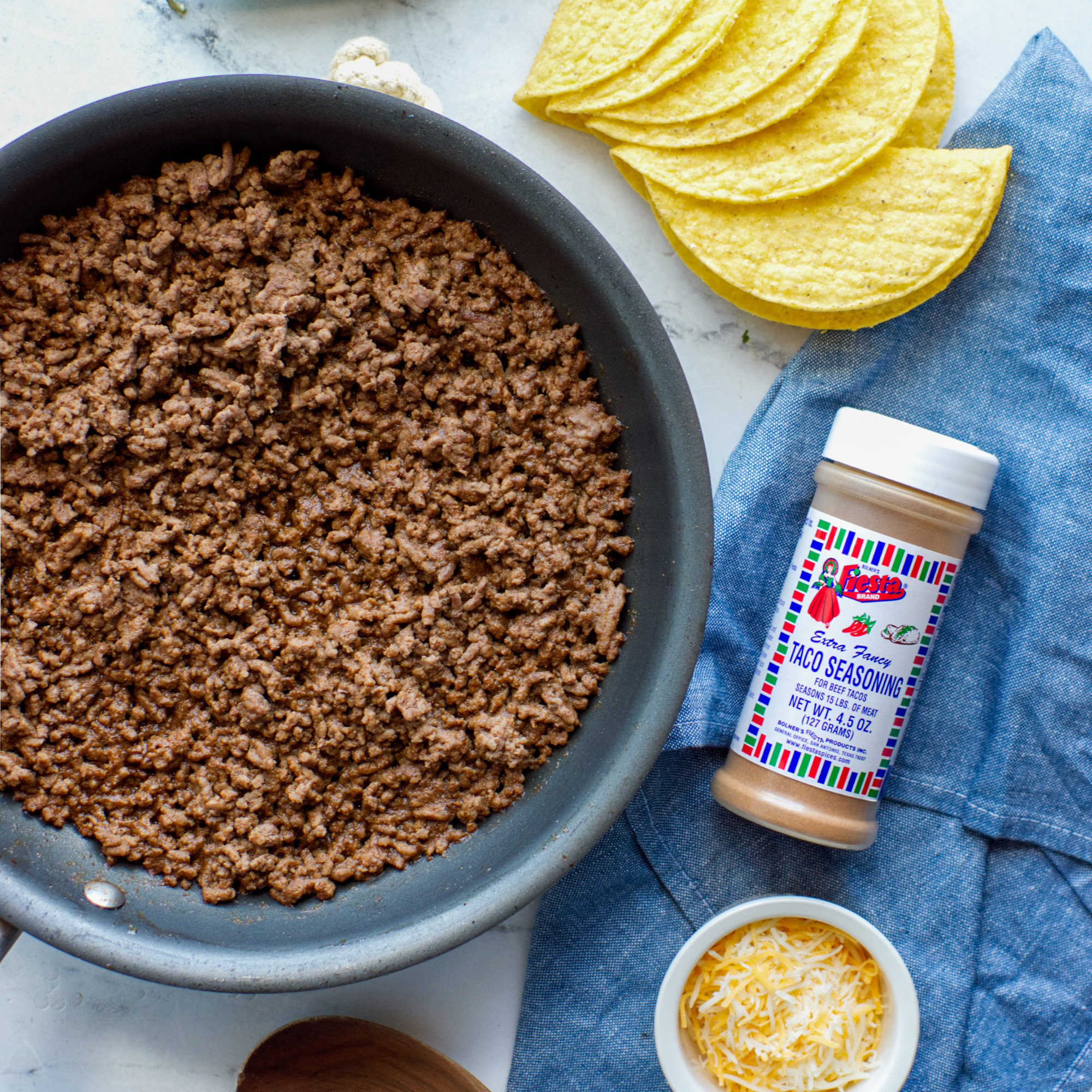 - 1 Tbsp Bolner’s Fiesta Brand Taco Seasoning
